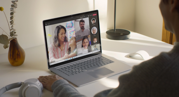 Pessoa que usa um Microsoft Surface Laptop 4 para conversar por vídeo com colegas
