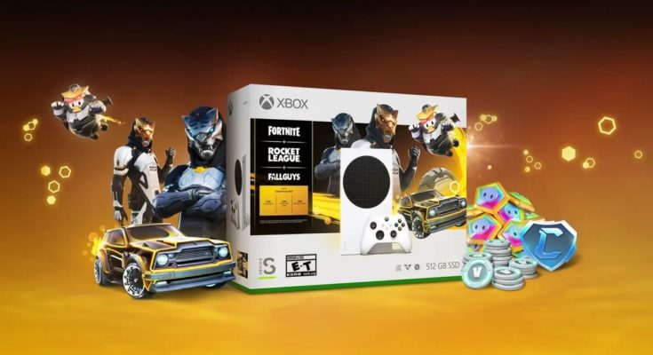 A Microsoft revelou hoje que venderá um “Gilded Hunter Bunde” nesta temporada de férias. O pacote inclui um Xbox Series S e um controlador de jogo, Fortnite com o pacote de itens cosméticos “Gilded Hunter Pack” e 1.000 V-Bucks, Rocket League com vários cosméticos e 1.000 créditos, e Fall Guys com o “Gilded Hunter Pack” e 1.000 Show-Bucks.