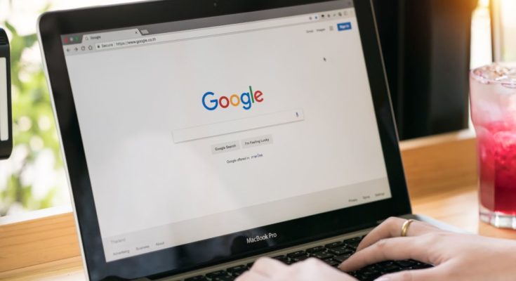 Tela do Apple MacBook mostrando a página inicial do Google.