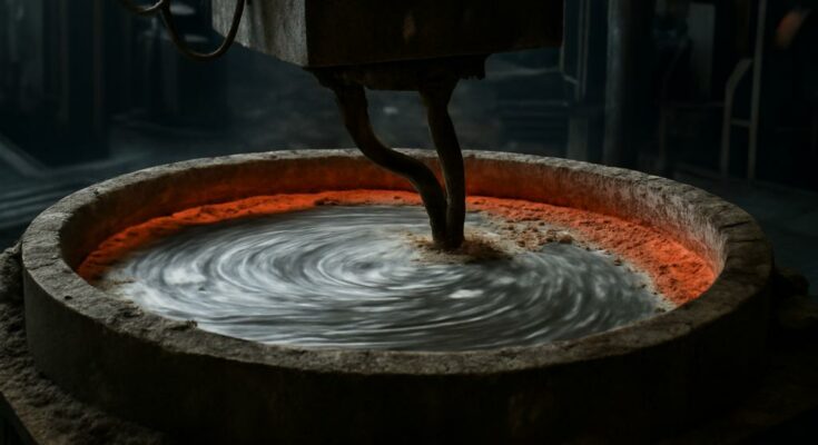 Imagine um enorme cadinho, vibrante com energia elétrica, onde alumínio líquido repousa sob uma camada de criolita – um banho mineral essencial para a produção de alumínio. Essa configuração aparentemente simples, no cerne do processo Hall-Héroult, esconde uma instabilidade surpreendentemente complexa: o redemoinho de metal (RM). O RM é um movimento oscilatório e rotatório no alumínio fundido, impulsionado por uma sutil interação de correntes elétricas e campos magnéticos. É um fenômeno que, se não controlado, pode causar curto-circuito em todo o processo, desperdiçando energia e interrompendo a produção.