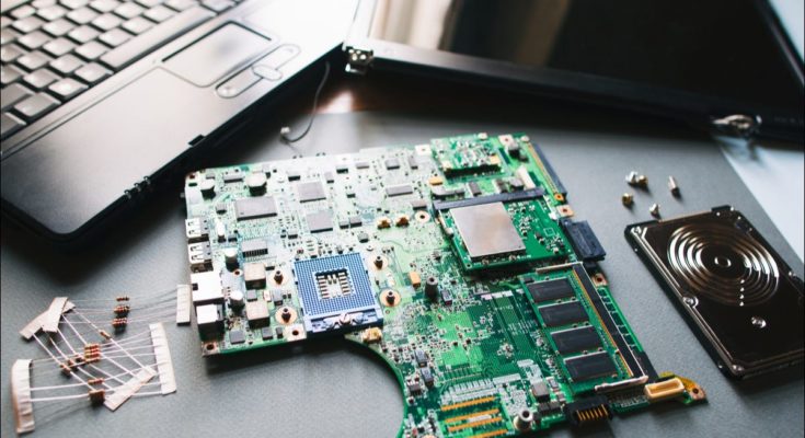 Um laptop desmontado.