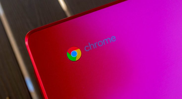 Logotipo do Chrome na tampa do ASUS Chromebook 12 C223NA.