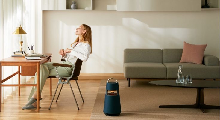 A LG descreve os recursos de festa do palestrante dizendo: “O LG XBOOM 360 pode criar a atmosfera certa para qualquer ocasião, graças à iluminação ambiente de 360 graus com três predefinições diferentes – Ambiente, Natureza e Festa.”