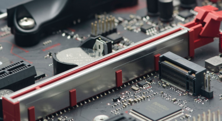 Além das portas PCIe regulares, há uma exceção digna de nota: o slot M.2 . A porta M.2 é o padrão para unidades de estado sólido (SSDs) NVMe de alta velocidade . M.2 não é fisicamente compatível com portas PCIe padrão, mas usa uma conexão PCIe x4.