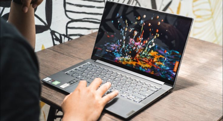 Edição de capa de tecido Lenovo Yoga Slim 7i em uma mesa