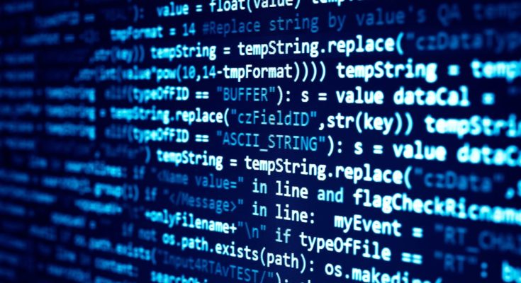 Close de uma tela de computador mostrando linhas de linguagem de programação.