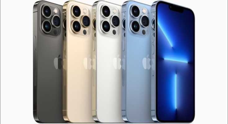Linha de telefones iPhone 13 Pro da Apple em quatro cores.