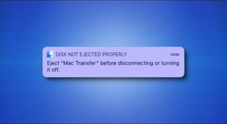 Se, repentinamente, você desconectar uma unidade removível do seu Mac, verá esta mensagem no canto superior direito da tela: “Disco não ejetado corretamente”. Mas o que significa e por que você precisa ejetar antes de desconectar uma unidade? Vamos explicar.