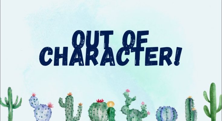 OOC como “fora do personagem” geralmente descreve um personagem fictício que se comporta de uma maneira incomum que é contraditória à maneira como foram escritos. Esse uso é comum em fóruns e comunidades que discutem livros, filmes, tv e videogames. Por exemplo, se alguém de seu programa favorito de repente se transforma em um vilão depois de permanecer um herói durante a maior parte do programa, você pode dizer: “Suas ações finais foram completamente OOC.”
