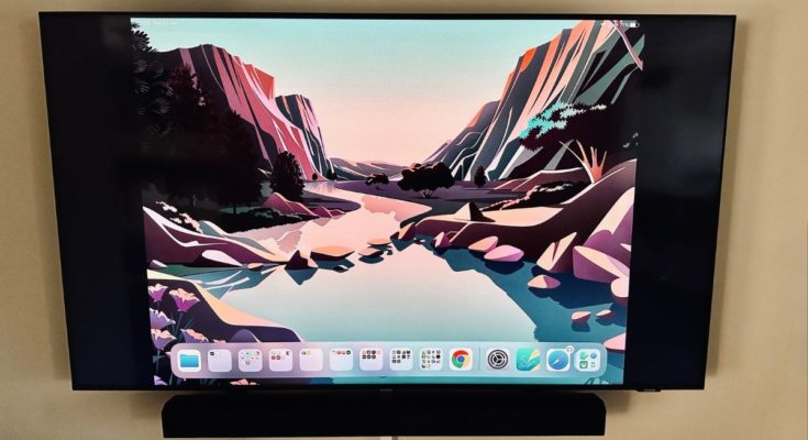 - Para conexões sem fio, são necessárias uma rede Wi-Fi e uma Apple TV ou dispositivo AirPlay 2 compatível. Muitas TVs modernas, como as da Samsung, possuem AirPlay 2 integrado. Aqui usei um Samsung QLED de 55″.
