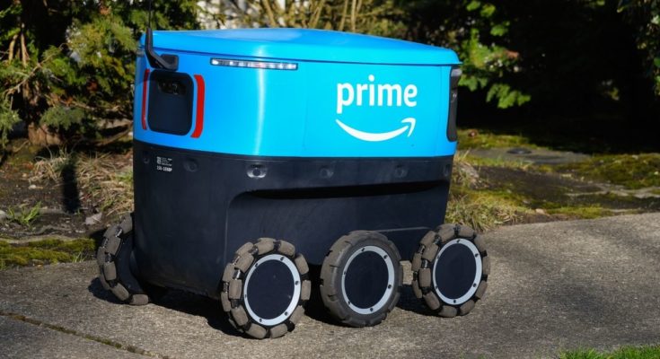 O robô entregador de seis rodas Scout esbarrou em seu último obstáculo em uma calçada e está sendo gradualmente aposentado pela Amazon . Futuros drones de entrega podem descer do ar para não ficarem presos nas incômodas raízes das árvores.