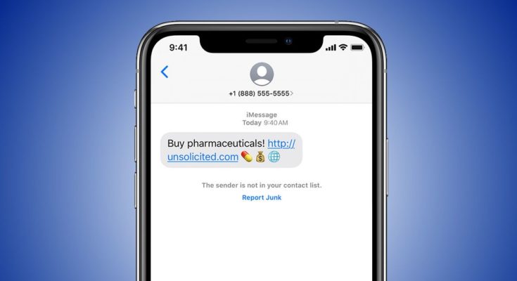 Portanto, se a mensagem de spam for originada de fora da rede do iMessage, nunca haverá uma tag “Relatar lixo eletrônico”. Dado que a grande maioria do spam é baseada em SMS e a Apple policia claramente e agressivamente o spam enviado através da rede iMessage, não é de admirar que as pessoas raramente o vejam.