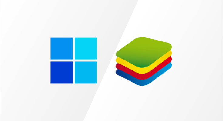 Logotipos do Windows 11 e Bluestacks.
