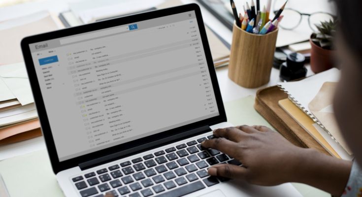 Pessoa visualizando sua caixa de entrada de e-mail em um laptop