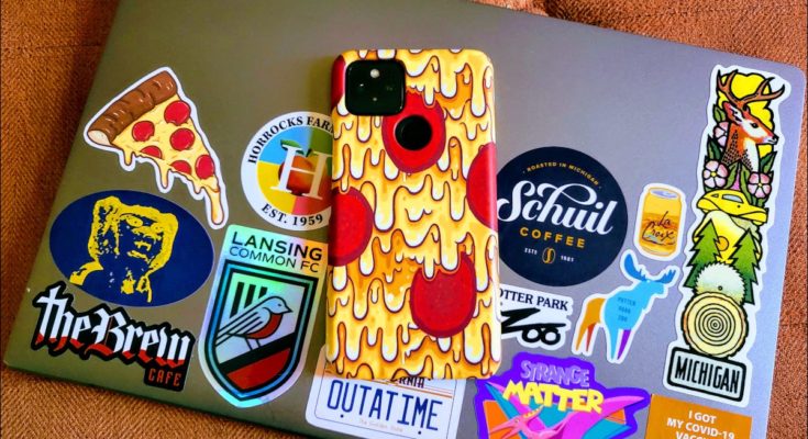 Vamos começar de forma simples. Como você pode ver pelo meu laptop na foto no topo desta página, eu gosto de adesivos. Eu vejo pessoas colocando adesivos em muitas coisas diferentes, mas não tanto em telefones. Não tenho certeza do porquê. Os adesivos são perfeitos para telefones.