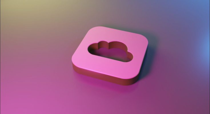 Logotipo 3D da Apple iCloud na superfície azul e violeta