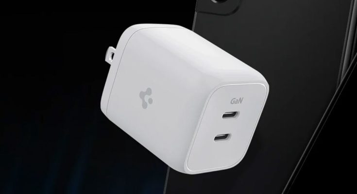 Este carregador USB Tipo C da Spigen possui duas portas e uma velocidade máxima de carregamento de 65W.