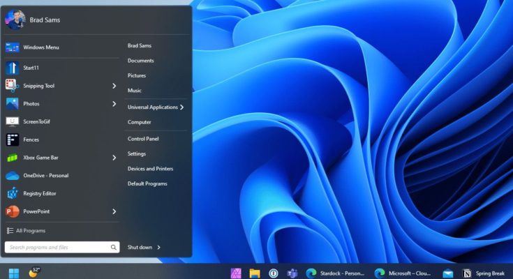Start11 da Stardock é um aplicativo popular para personalizar o menu iniciar e a barra de tarefas, no Windows 10 ou no Windows 11. Existem vários layouts de menu iniciar para escolher, incluindo designs que refletem o menu no Windows 7 ou Windows 10 e mais opções de personalização estão disponíveis para a barra de tarefas. Alguns dos recursos da barra de tarefas também podem ser acessados modificando as configurações do registro no Windows , como mover a barra de tarefas para o topo da tela, mas os designs do menu Iniciar são exclusivos do Start11.