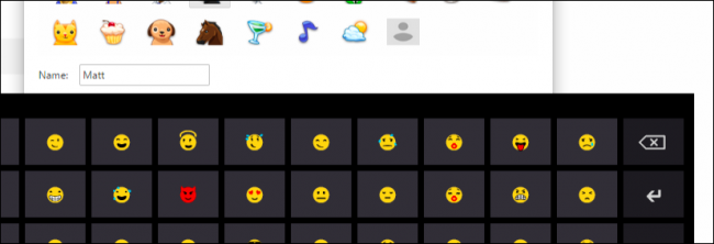To do the same thing on Windows (8.x and later), again open your Chrome settings, choose the profile under people, click “Edit…” and then open the emoji touch keyboard. To do this, click the touch keyboard icon on the taskbar.