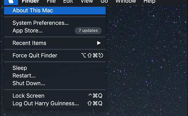 Os Macs são atualizados regularmente e, mesmo que os modelos mais novos não pareçam tão diferentes, grandes mudanças podem acontecer no interior. Um iMac de 21,5 ”de 2012 e um iMac Retina de 21,5” de 2016 podem parecer iguais, mas são computadores totalmente diferentes. Para descobrir exatamente qual Mac você possui, clique no logotipo da Apple no canto superior esquerdo da barra de menu e selecione o comando “Sobre este Mac”.